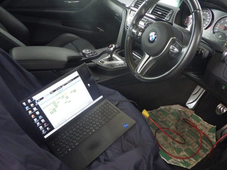 バッテリー診断を行いBMW専用テスターを車両に接続してコンピューター診断を行いエラーチェック、