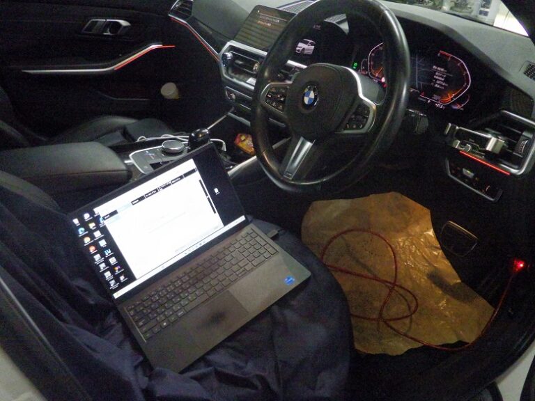 最後にBMW専用テスターを車両に接続してコンピューター診断を行いエラーチェック、消去