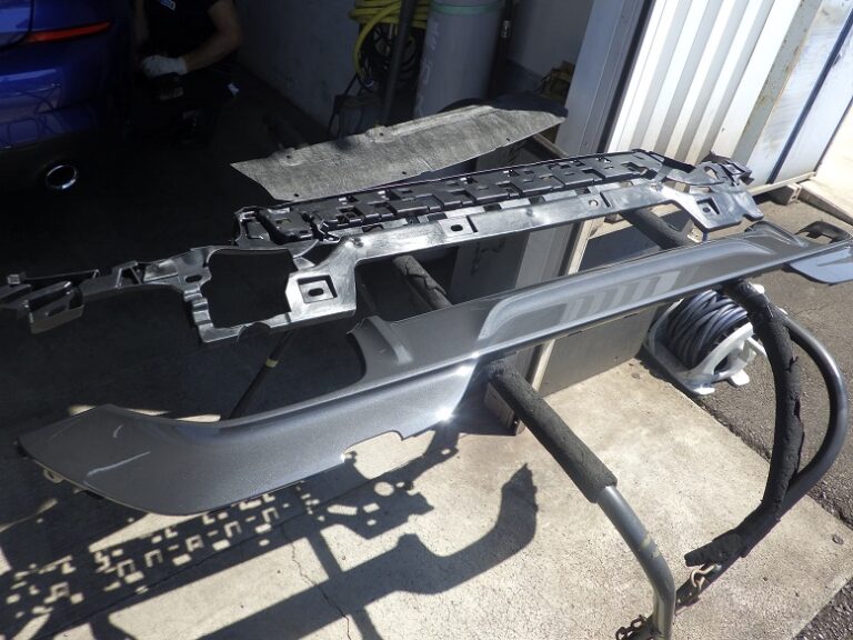 純正のディフューザーを外した際にバンパー側の取り付け部分に汚れが溜まっているので綺麗にしてから