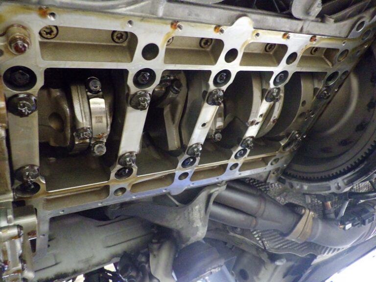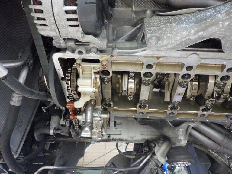 オイルパンを外してポンプや付属品も全て取り外してメタルを交換し既定のトルクで組み上げていきます