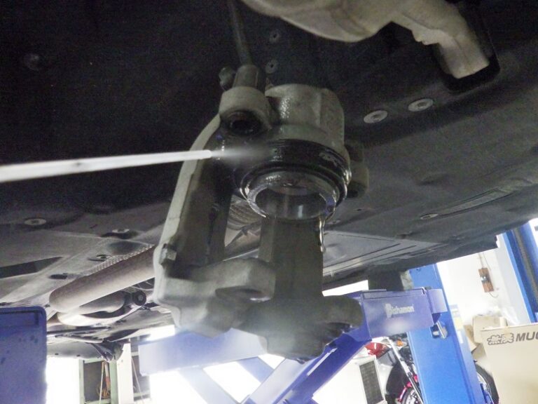 行いキャリパーまわりの洗浄とシールからのフルード滲みの点検、ハブ部分の錆取り防錆処理を行いホイールは、