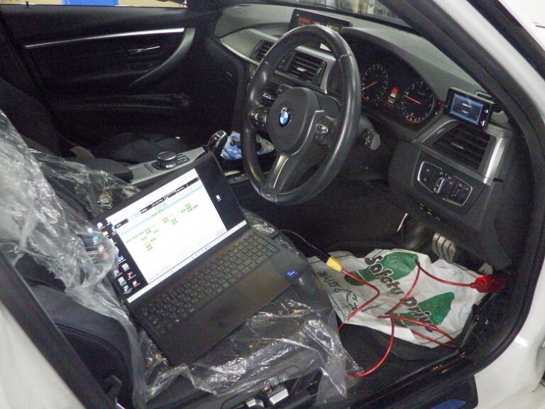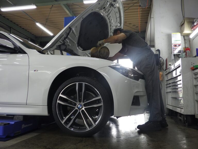 F31 320iのお客様の車検整備を作業しました。当店は、お盆までが作業予約のピークでした・・・・がしかし
