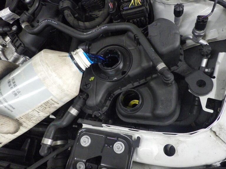 裏も表も綺麗に洗います。同時に車検毎に交換を推奨しておりますクーラントとブレーキフルードは、