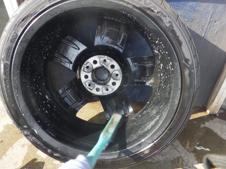 行いキャリパーまわりの洗浄とシールからのフルード滲みの点検、ハブ部分の錆取り防錆処理を行いホイールは、