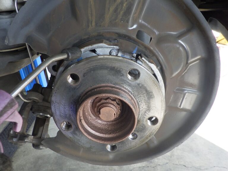 当店の車検整備においては、リアブレーキローターは、取り外してサイドブレーキシューまわりの洗浄と