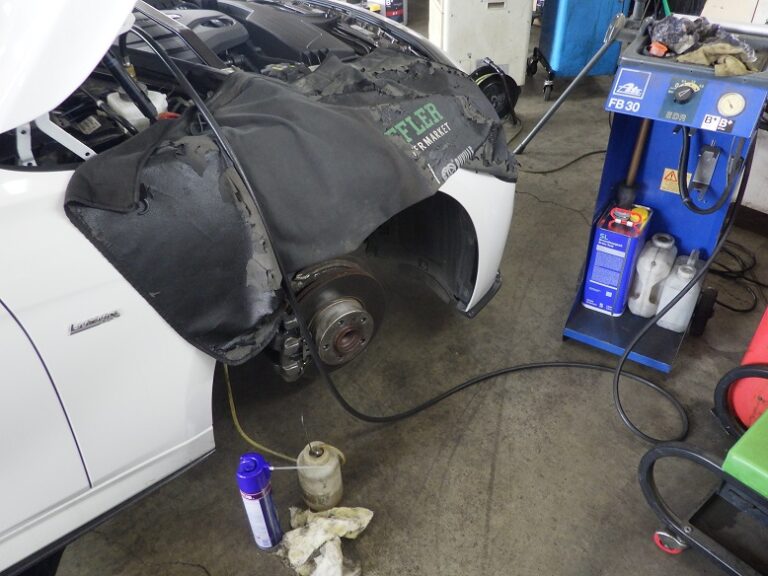 行いキャリパーまわりの洗浄とシールからのフルード滲みの点検、ハブ部分の錆取り防錆処理を行いホイールは、