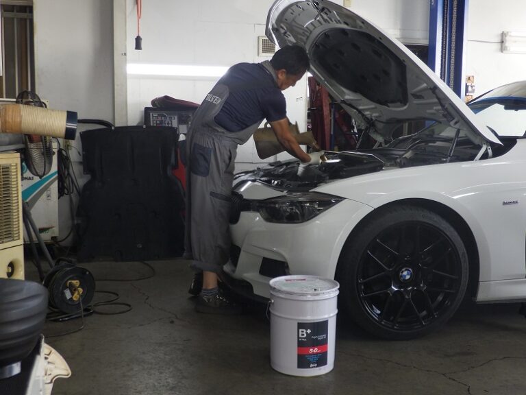 こちらは、F30 320dのお客様の車検整備を作業しました。9月に入り怒涛の勢いで車検整備入庫の