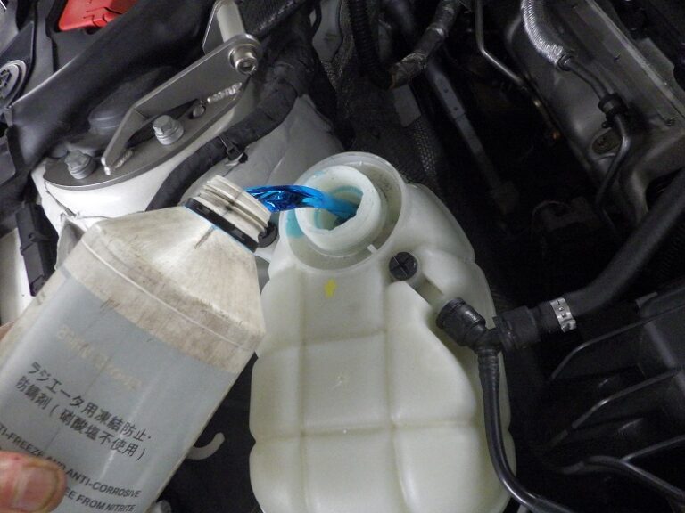裏も表も綺麗に洗います。同時に車検毎に交換を推奨しておりますクーラントとブレーキフルードは、