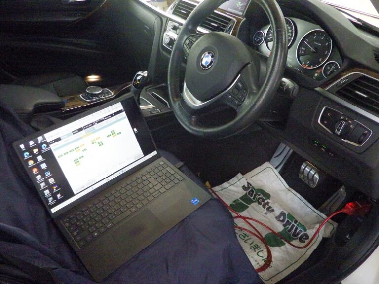 バッテリー診断を行いBMW専用テスターを車両に接続してコンピューター診断を行いエラーチェック、