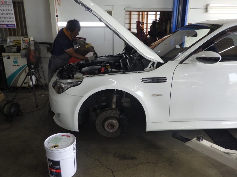 E60M5のお客様の12カ月点検を作業しました。ブログの方は、車検整備と12カ月点検の記事が多い