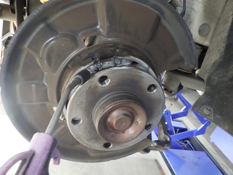 当店の車検整備においては、リアブレーキローターは、取り外してサイドブレーキシューまわりの洗浄と