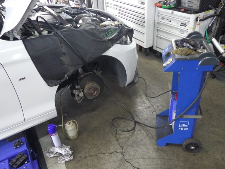行いキャリパーまわりの洗浄とシールからのフルード滲みの点検、ハブ部分の錆取り防錆処理を行いホイールは、