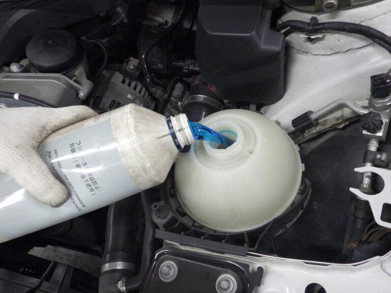 裏も表も綺麗に洗います。同時に車検毎に交換を推奨しておりますクーラントとブレーキフルードは、