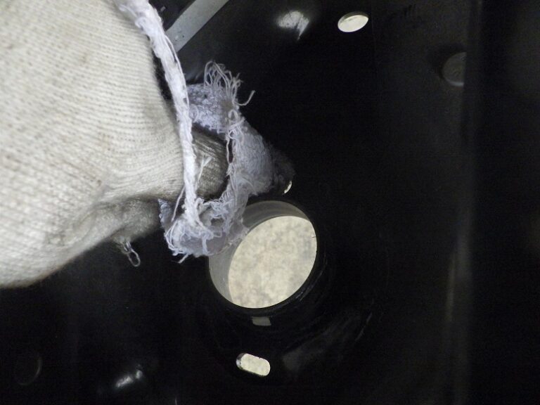 リアのスプリング底面取り付け部分のアーム側に砂利が溜まる傾向なのでダウンサスを組み付けの際に