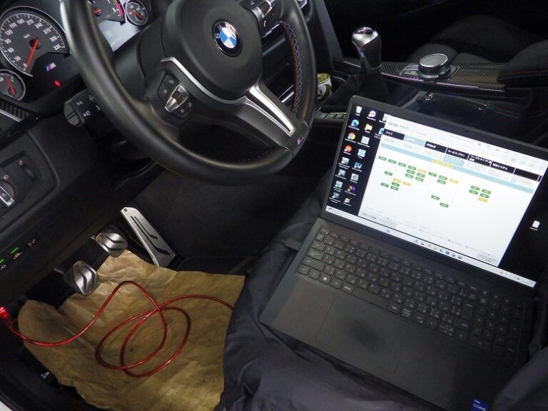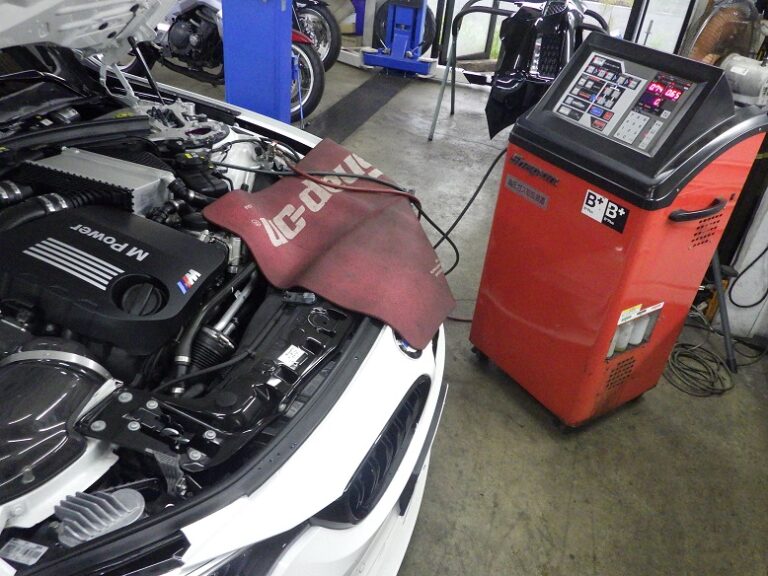バッテリー診断を行いBMW専用テスターを車両に接続してコンピューター診断を行いエラーチェック、