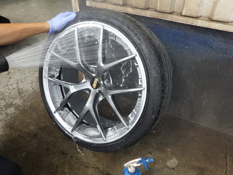 行いキャリパーまわりの洗浄とシールからのフルード滲みの点検、ハブ部分の錆取り防錆処理を行いホイールは、