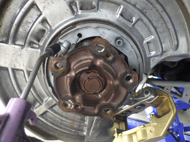 当店の車検整備においては、リアブレーキローターは、取り外してサイドブレーキシューまわりの洗浄と