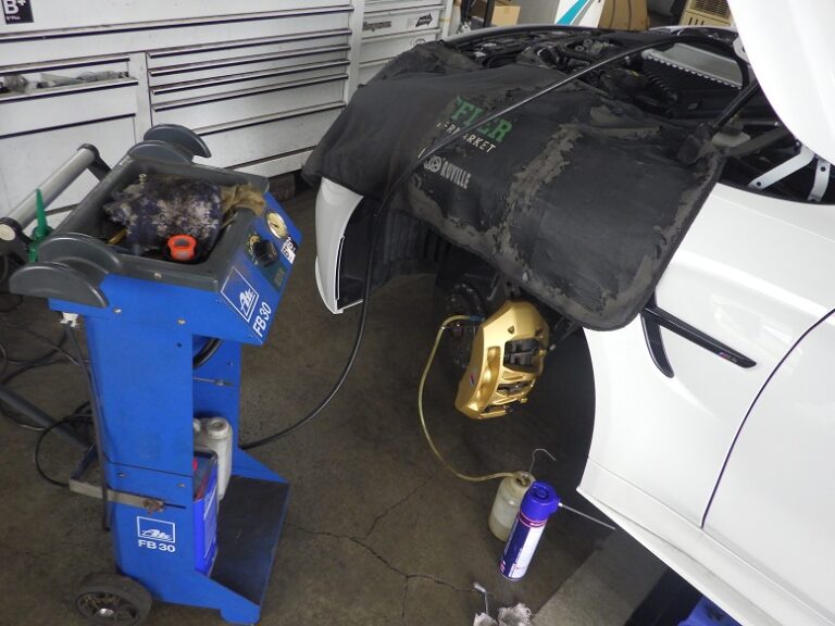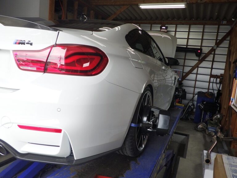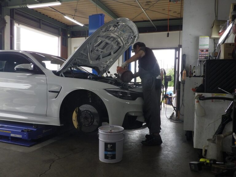 F82M4のお客様の車検整備を作業しました。今月も当店の駐車場は、作業待ちの車両で満員御礼です!