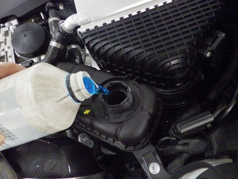 裏も表も綺麗に洗います。同時に車検毎に交換を推奨しておりますクーラントとブレーキフルードは、