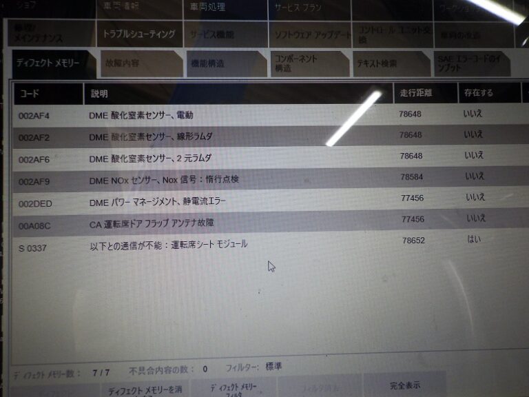 BMW専用テスターにてコンピューター診断をしたところNOXセンサーのエラーがありまして