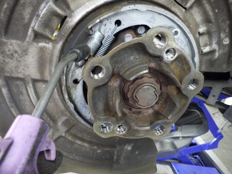 当店の車検整備においては、リアブレーキローターは、取り外してサイドブレーキシューまわりの洗浄と