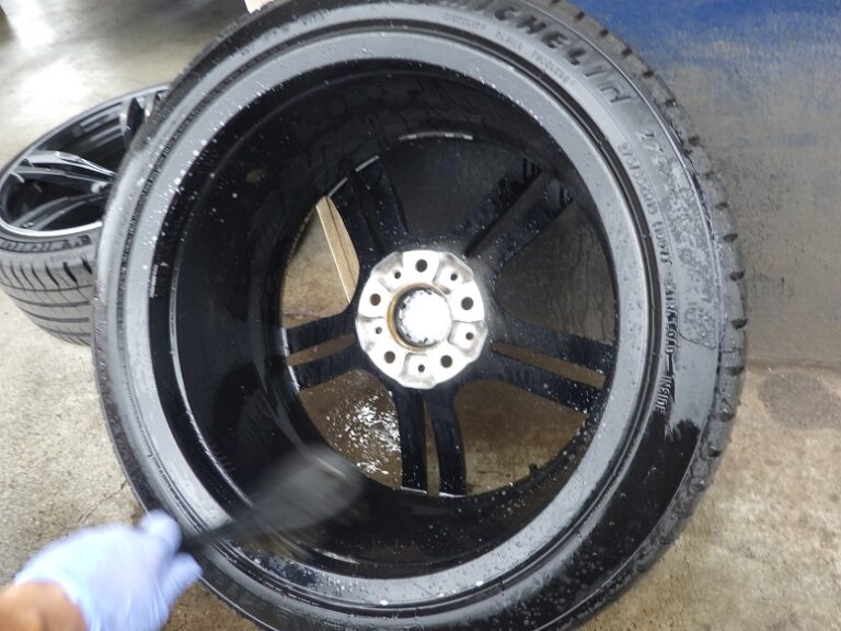 行いキャリパーまわりの洗浄とシールからのフルード滲みの点検、ハブ部分の錆取り防錆処理を行いホイールは、