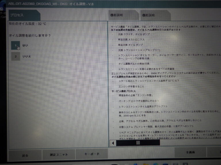 フルード量の調整は、車両にBMW専用テスターを接続してフルードの温度管理をしながら進めます。