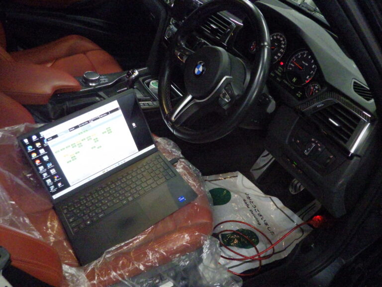 バッテリー診断を行いBMW専用テスターを車両に接続してコンピューター診断を行いエラーチェック、