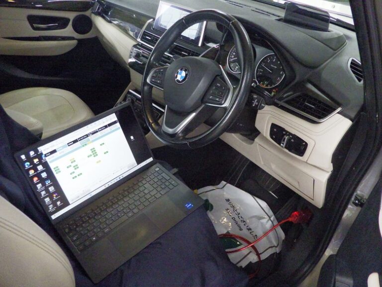 最後にBMW専用テスターを車両に接続してコンピューター診断を行いエラーチェック、消去、サービスインターバルリセット