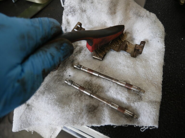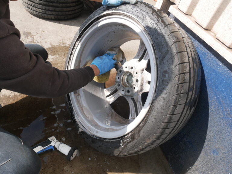 フルード滲みを点検してパッドは、グリスアップをして取り付けしてハブ部分の錆取り、防錆処理を行いホイールは、