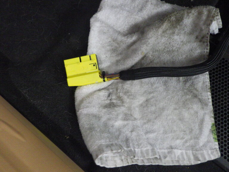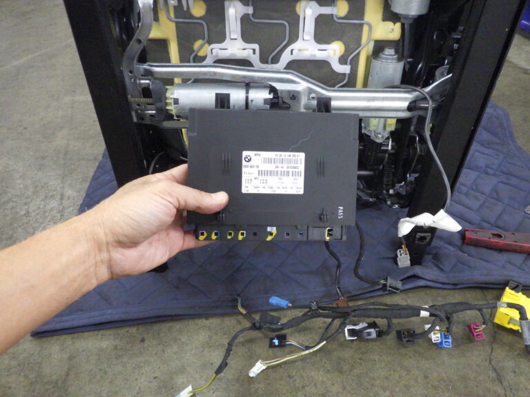 純正シートからハーネスを外して車両側に移設します。このユニットが付いていないとコンピューター診断を