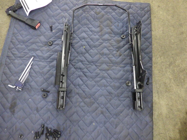 シートをつける前にレール、ステーを組み立てします。尚、助手席にセンサーマットが付いている車両には、