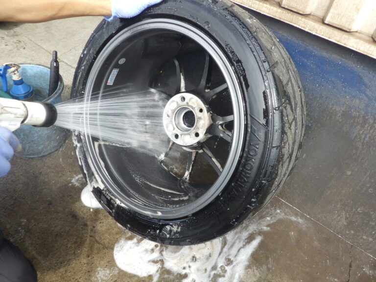 行いキャリパーまわりの洗浄とシールからのフルード滲みの点検、ハブ部分の錆取り防錆処理を行いホイールは、
