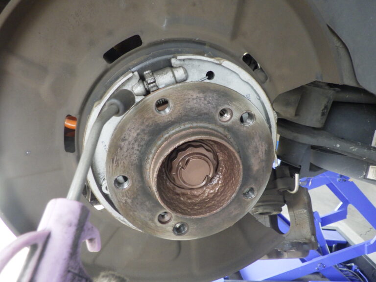 当店の車検整備においては、リアブレーキローターは、取り外してサイドブレーキシューまわりの洗浄と
