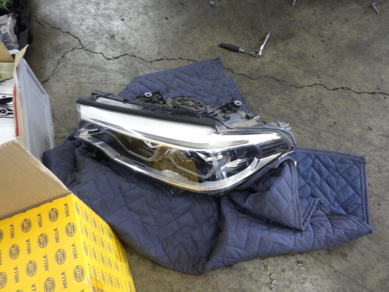 G30 のお客様のヘッドライトの交換を作業しました。片側のヘッドライトのリングマーカーが変色して