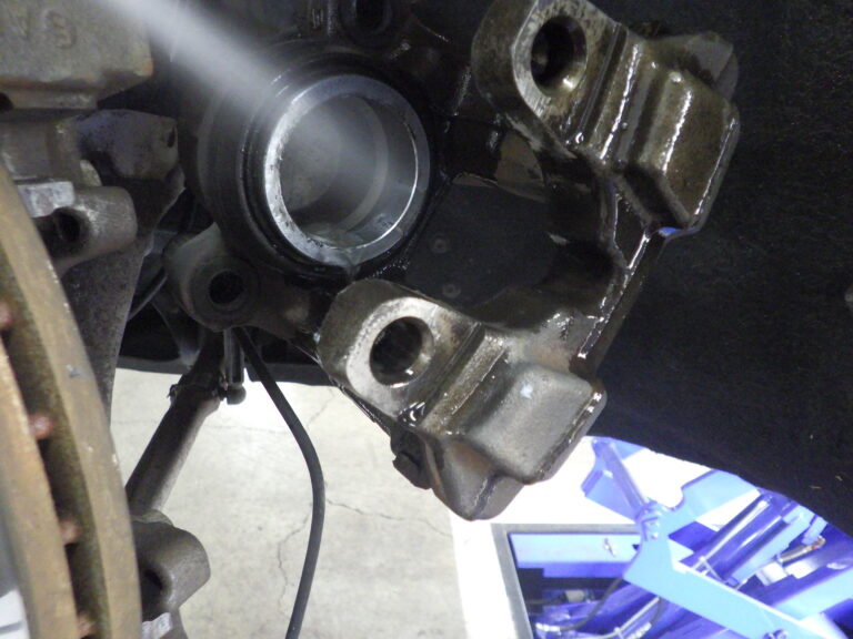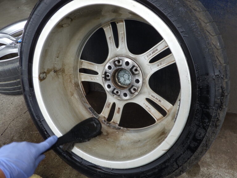 行いキャリパーまわりの洗浄とシールからのフルード滲みの点検、ハブ部分の錆取り防錆処理を行いホイールは、