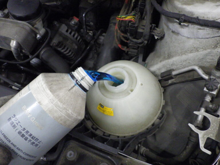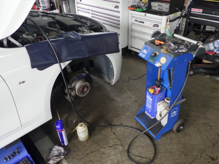 裏も表も綺麗に洗います。同時に車検毎に交換を推奨しておりますクーラントとブレーキフルードは、純正同等品使用にて