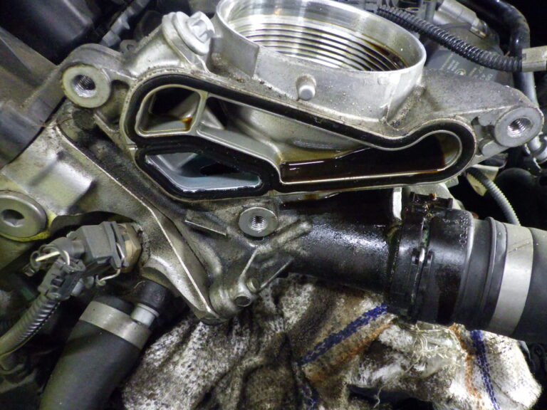 エレメントブロックパッキンからオイル漏れがありましてパッキンの交換と漏れたオイルの汚れを高圧洗浄機で