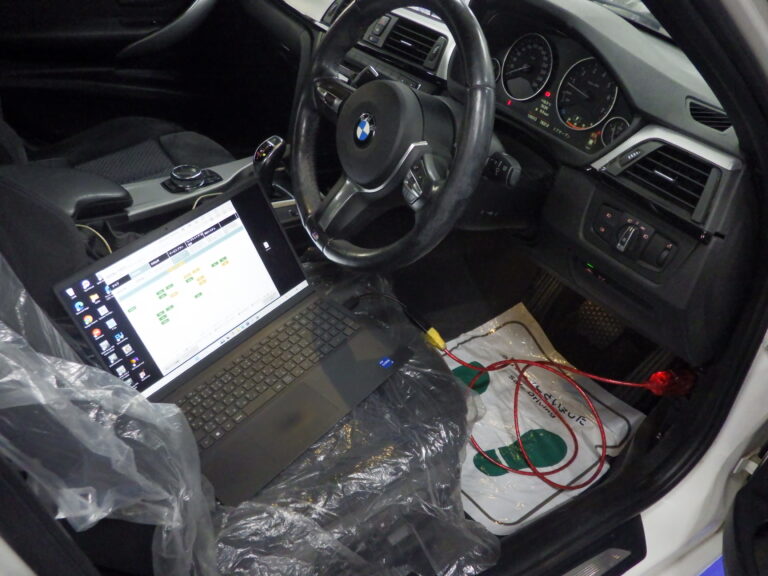 バッテリー診断を行いBMW専用テスターを車両に接続してコンピューター診断を行いエラーチェック