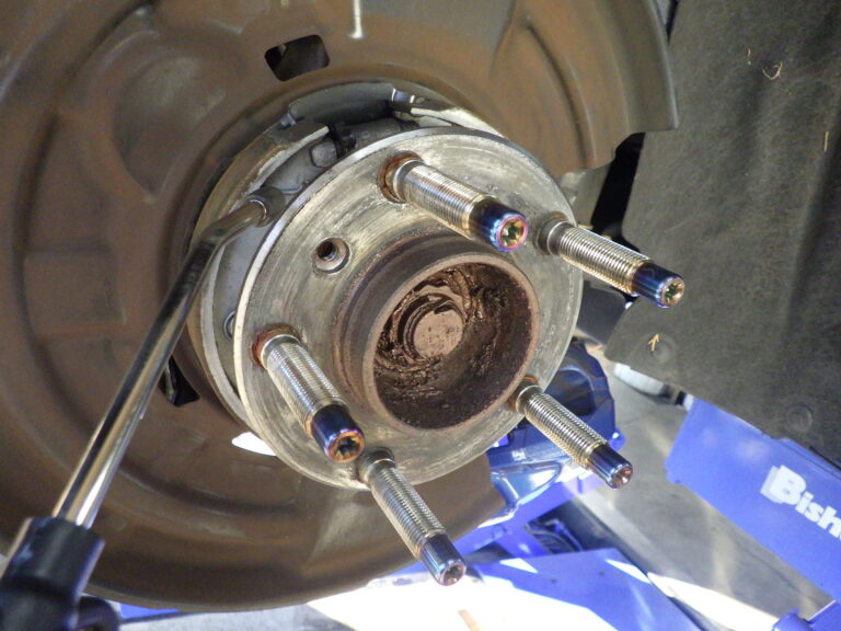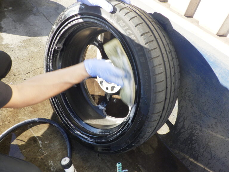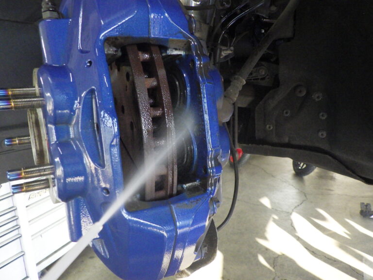 行いキャリパーまわりの洗浄とシールからのフルード滲みの点検、ハブ部分の錆取り防錆処理を行いホイールは、