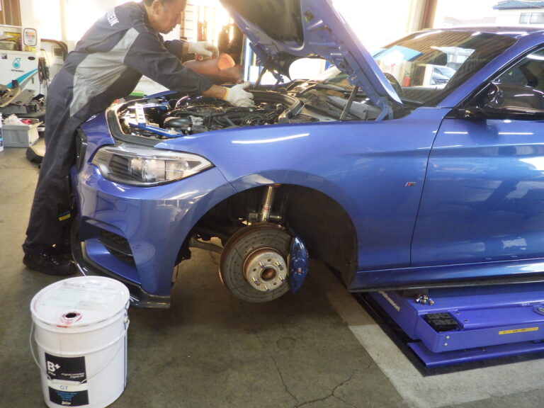 作業しました。ブレーキフルードは、次回ブレンボGTキットを取付する予定なので交換を省略してマニュアル車両なので