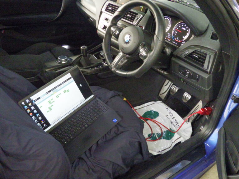 バッテリー診断を行いBMW専用テスターを車両に接続してコンピューター診断を行いエラーチェック