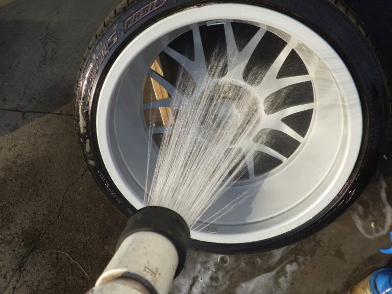 行いキャリパーまわりの洗浄とシールからのフルード滲みの点検、ハブ部分の錆取り防錆処理を行いホイールは、