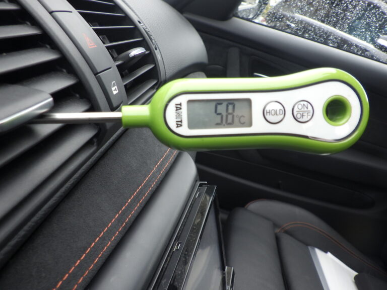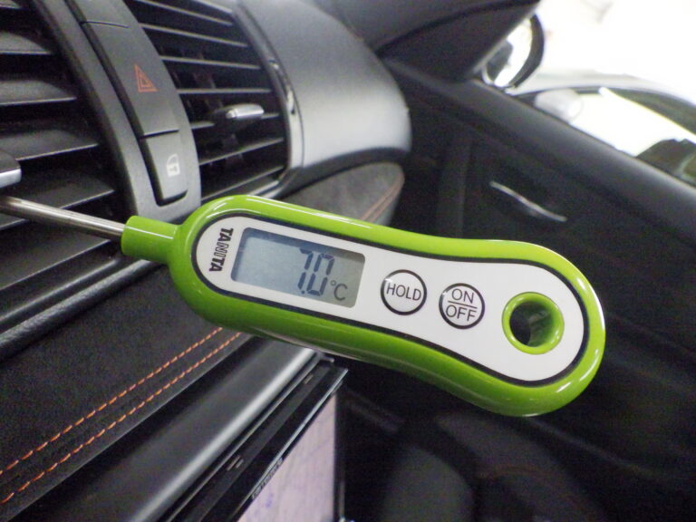 車検キャンペーンをご利用にてACガスクリーニングを施工しました。施工後のAC吹き出し口温度は、