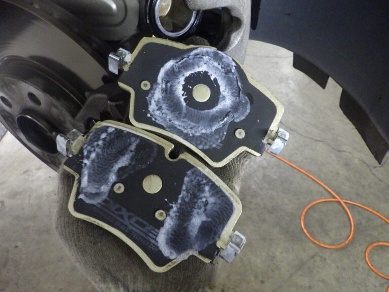当店の車検整備においては、ブレーキパッドは、前後とも取り外して残量点検と表面の洗浄をしてグリスアップ