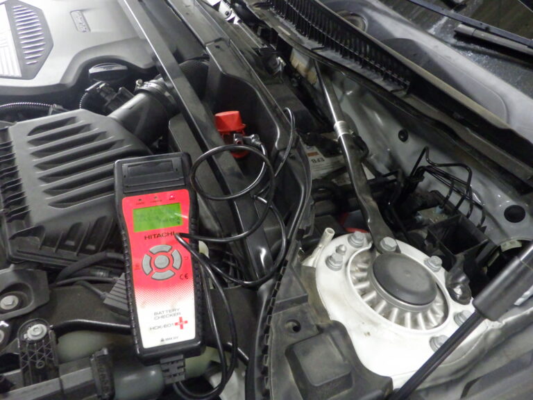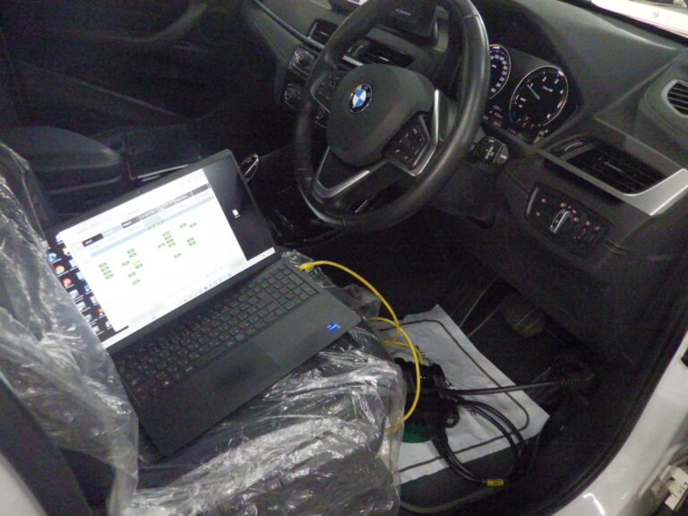 バッテリー診断を行いBMW専用テスターを車両に接続してコンピューター診断を行いエラーチェック