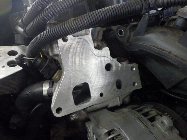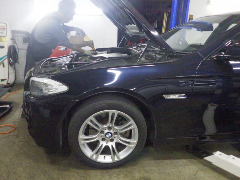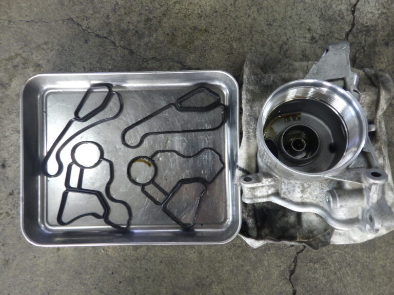 F10 523iのお客様のオイル漏れ修理でエレメントブロックパッキン2か所の交換を作業しました。