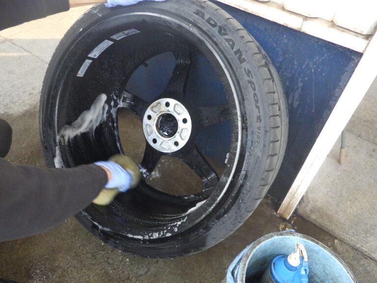 行いキャリパーまわりの洗浄とシールからのフルード滲みの点検、ハブ部分の錆取り防錆処理を行いホイールは、
