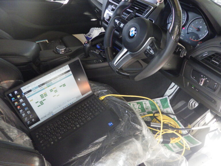 バッテリー診断を行いBMW専用テスターを車両に接続してコンピューター診断を行いエラーチェック