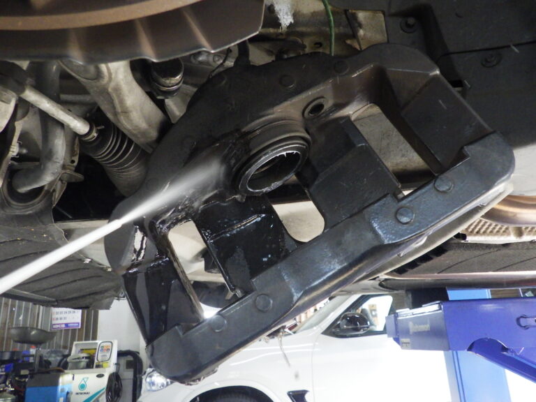 フルード滲みの点検を行いハブ部分の錆取り、防錆処理を行いホイールは、裏も表も綺麗に洗います
